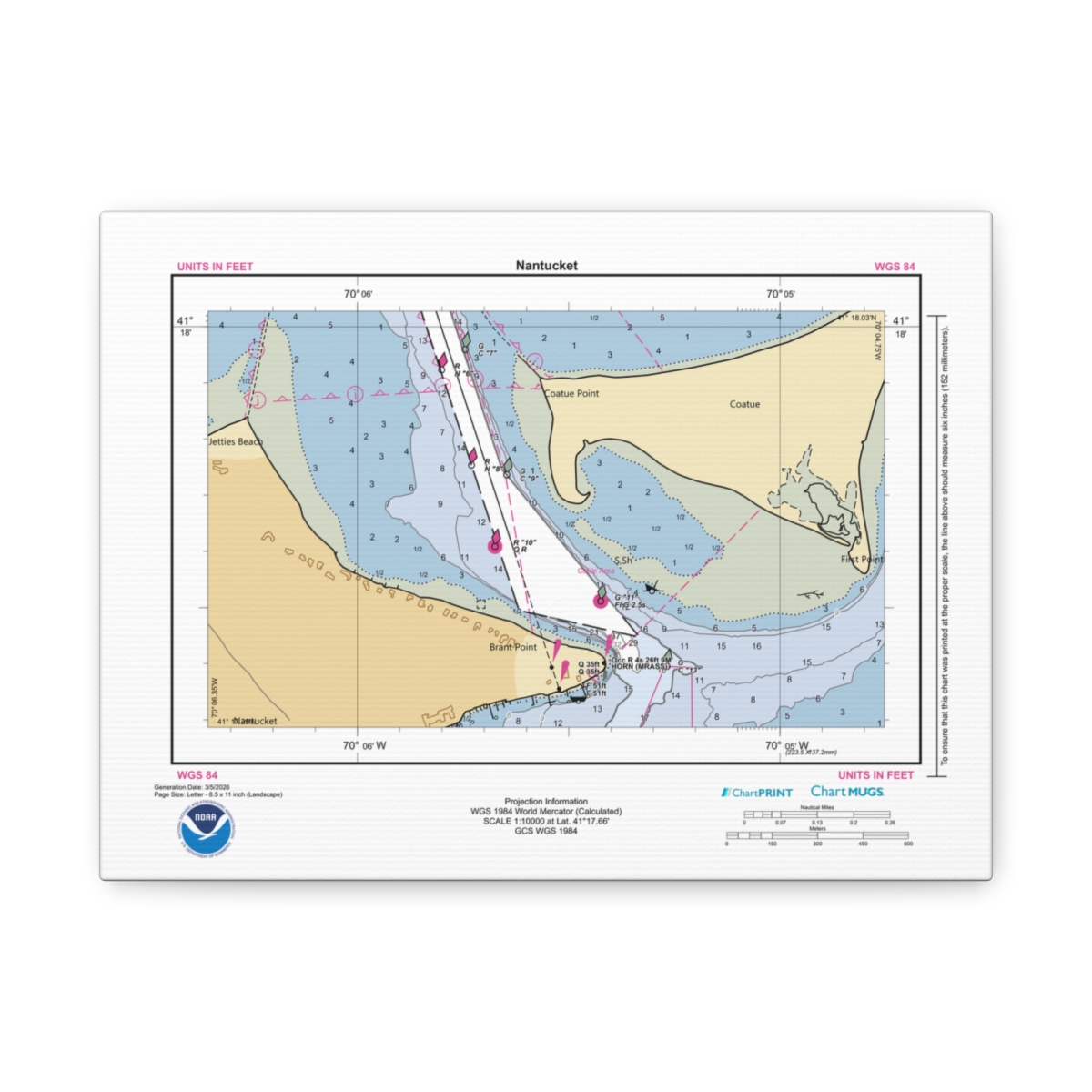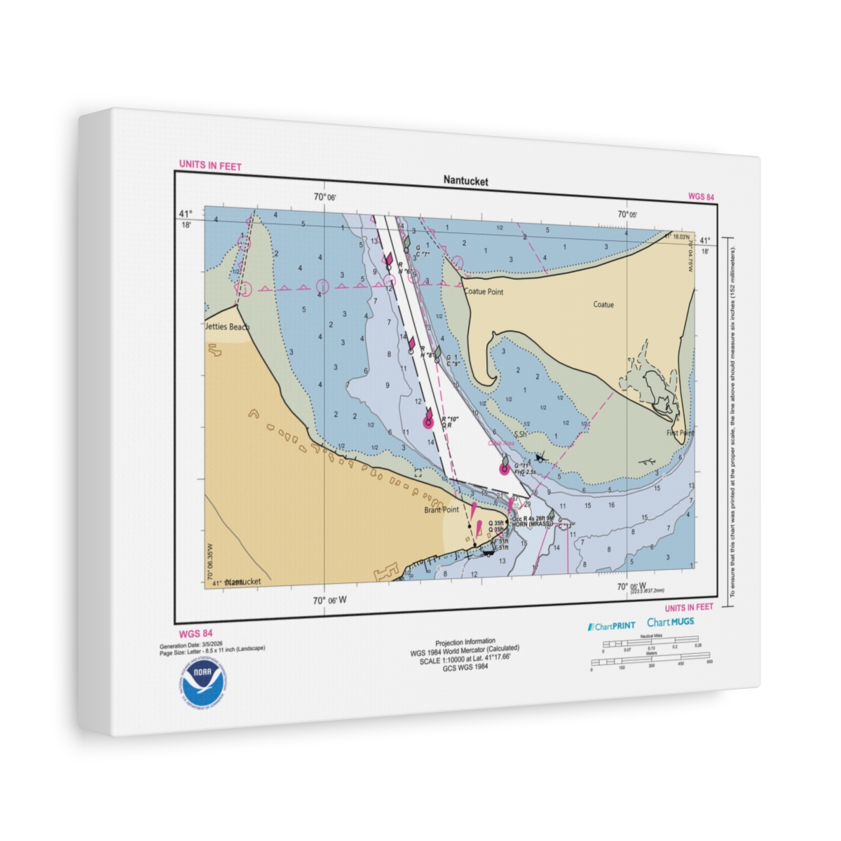 Canvas Custom Chart of Nantucket – NOAA Nautical Chart 11″ x 8.5″