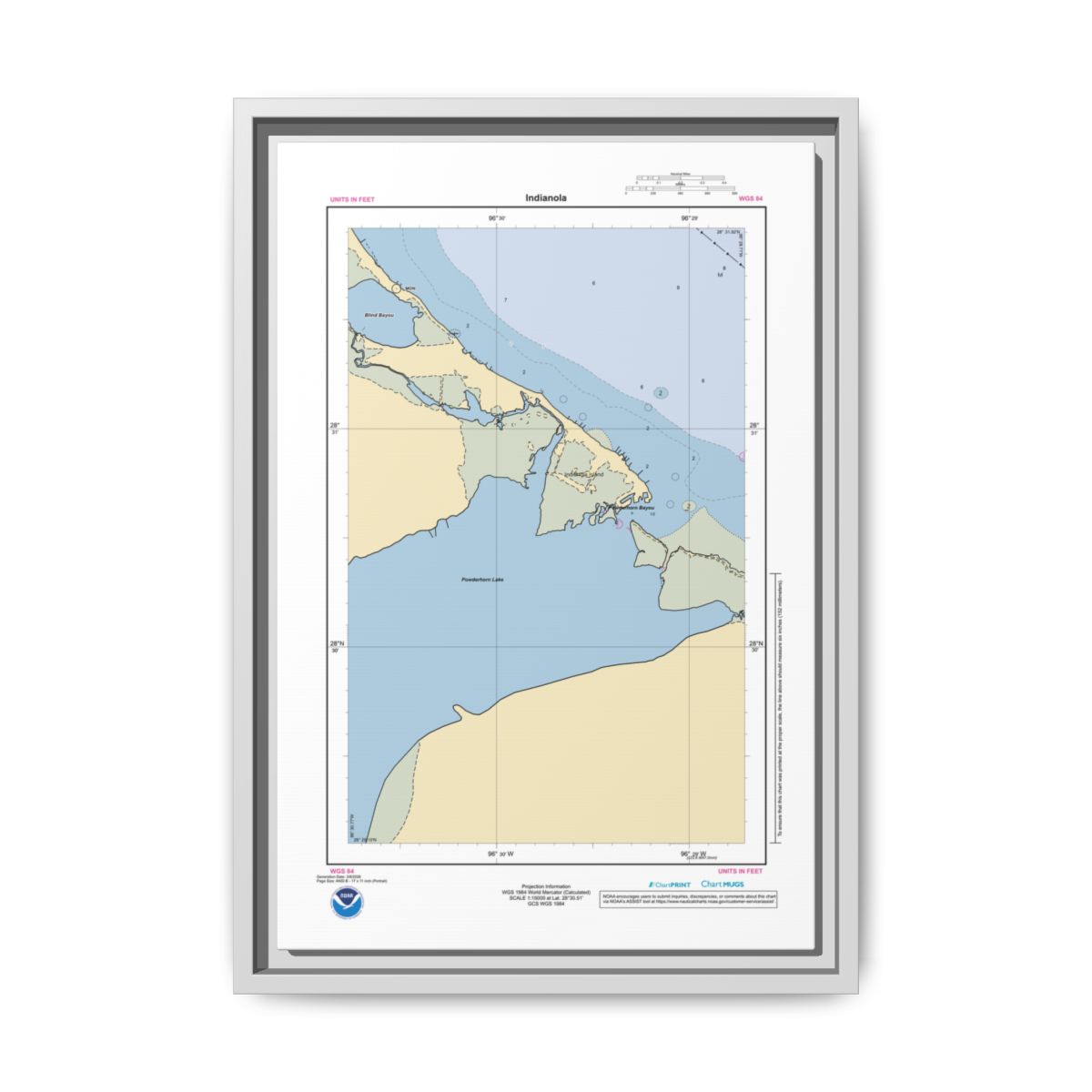 Canvas Framed Custom Chart of Indianola – NOAA Nautical Chart 11″ x 17″