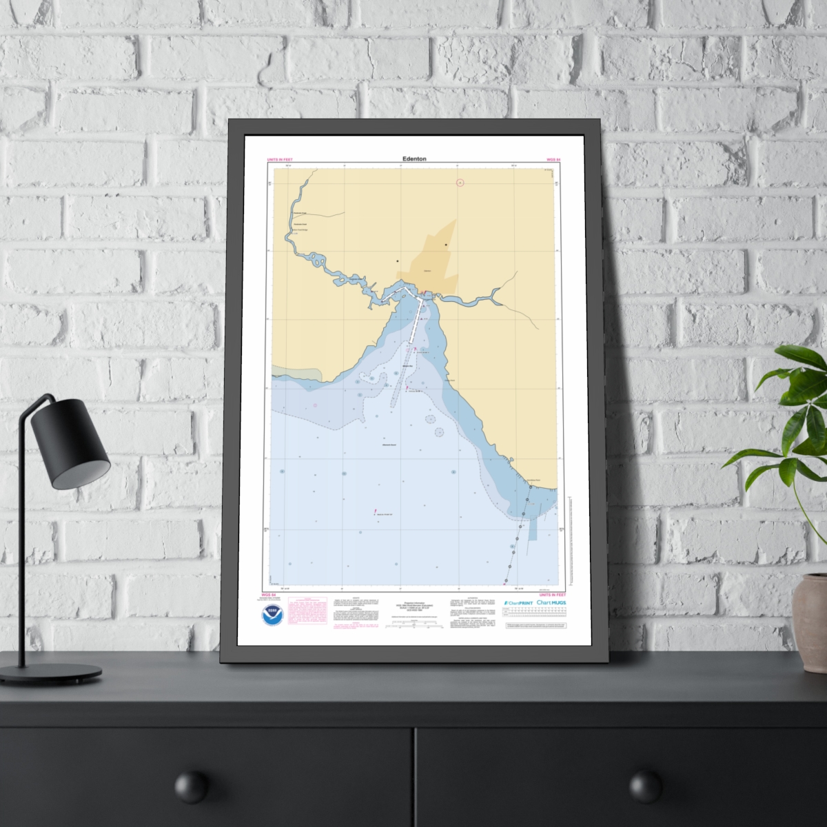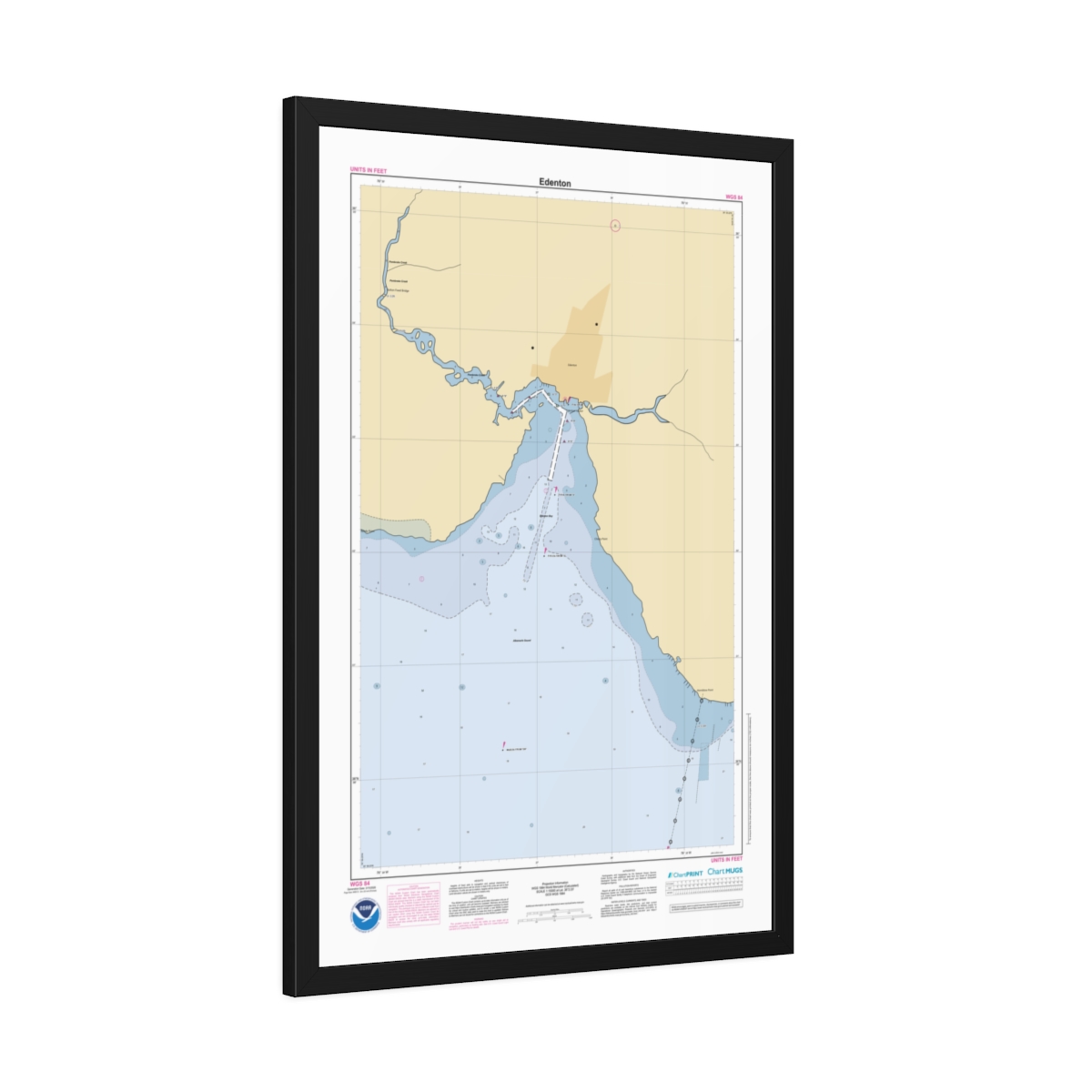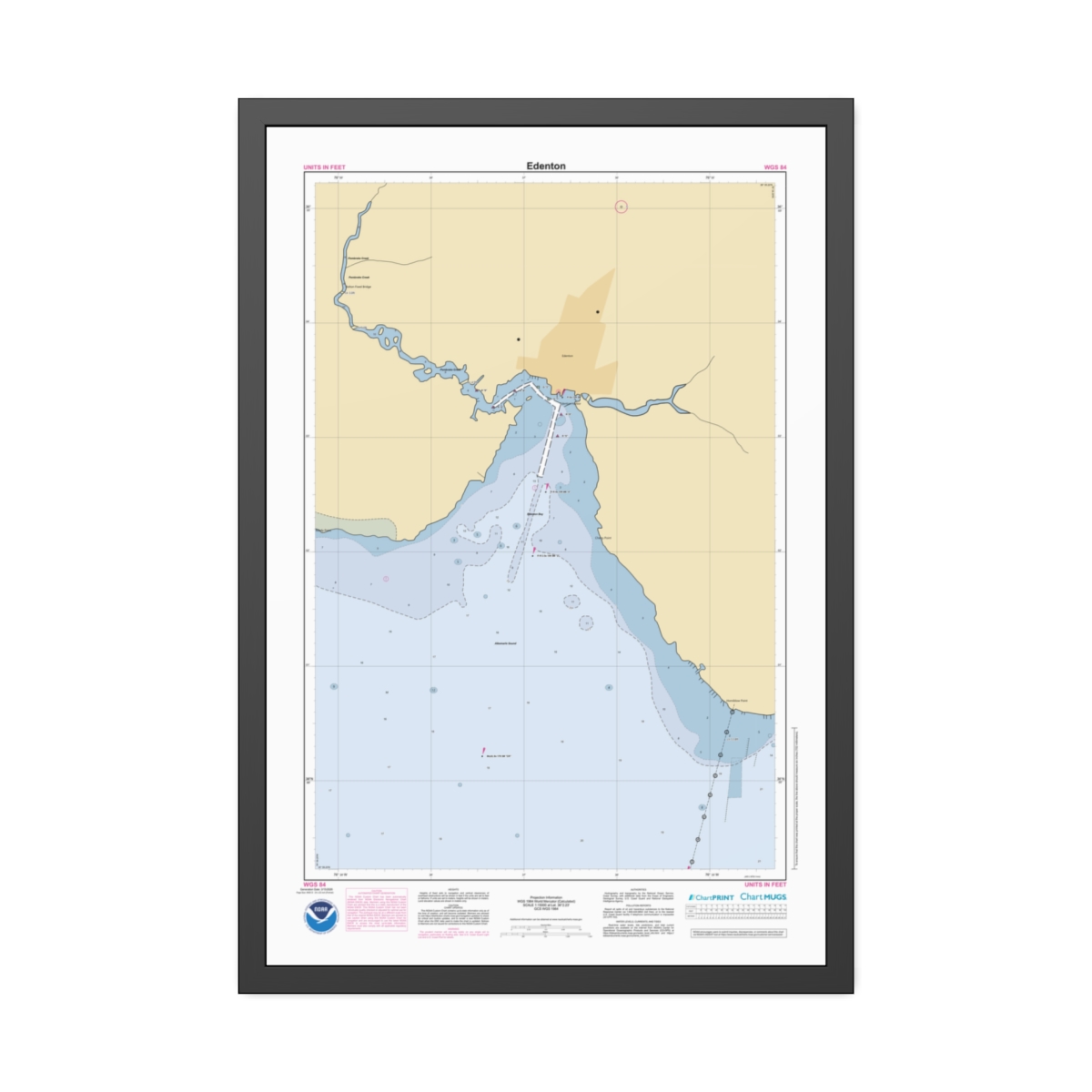 Custom nautical chart of Edenton on framed paper print. Official NOAA data. Free shipping.