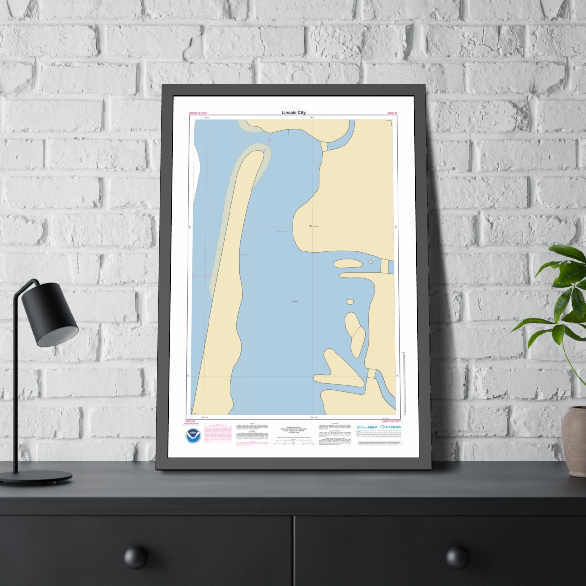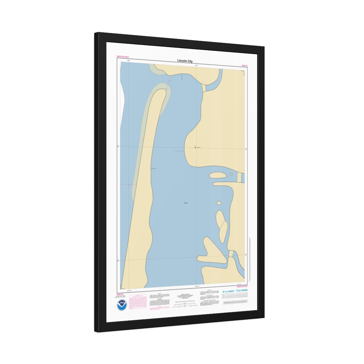 Framed Custom Chart of Lincoln City – NOAA Nautical Chart 22″ x 34″