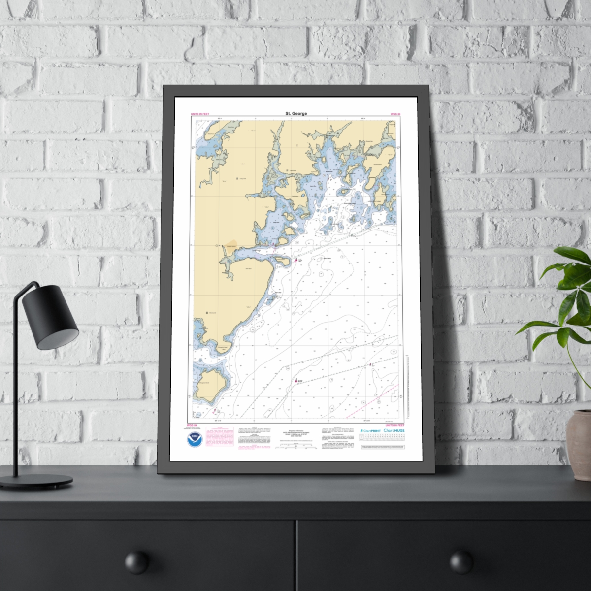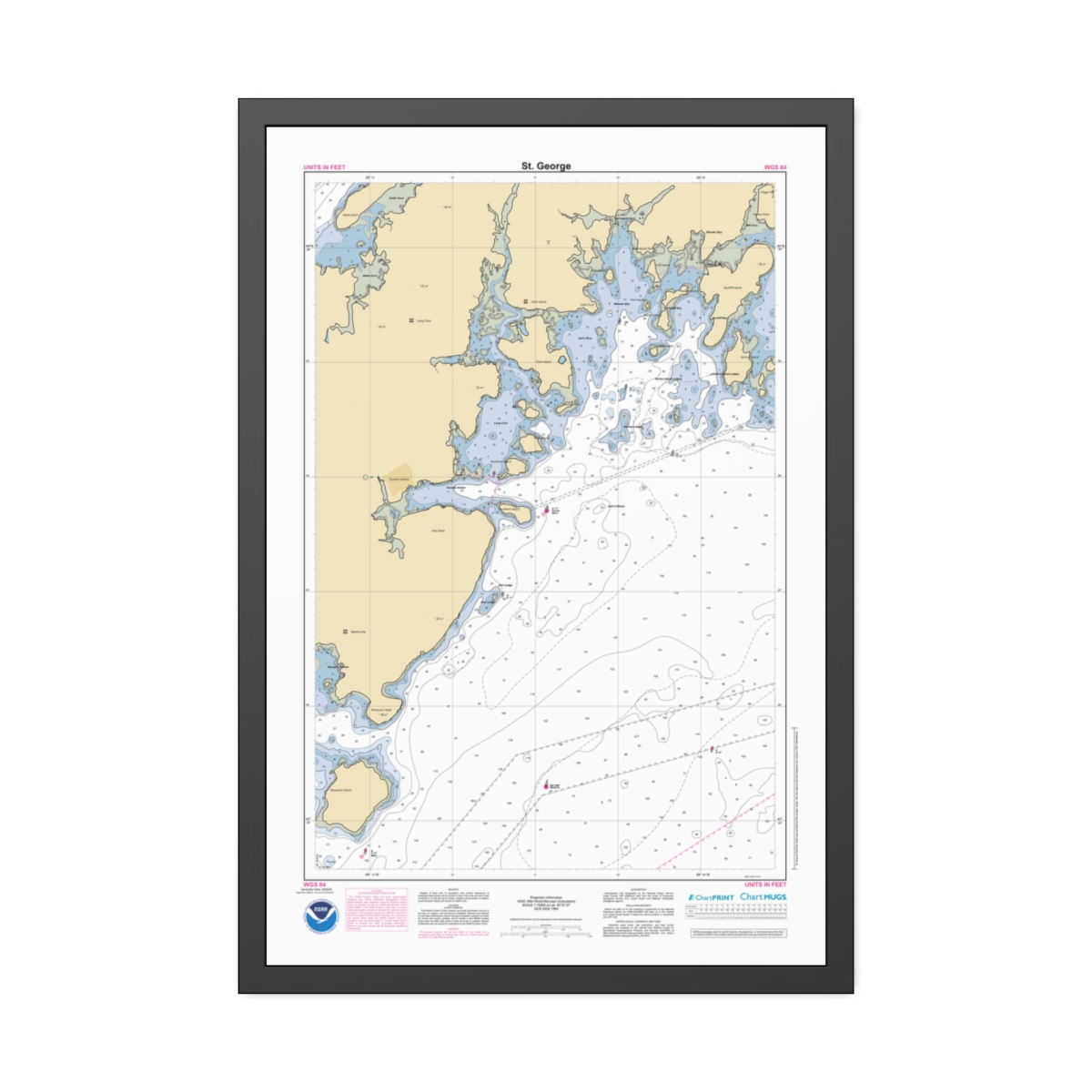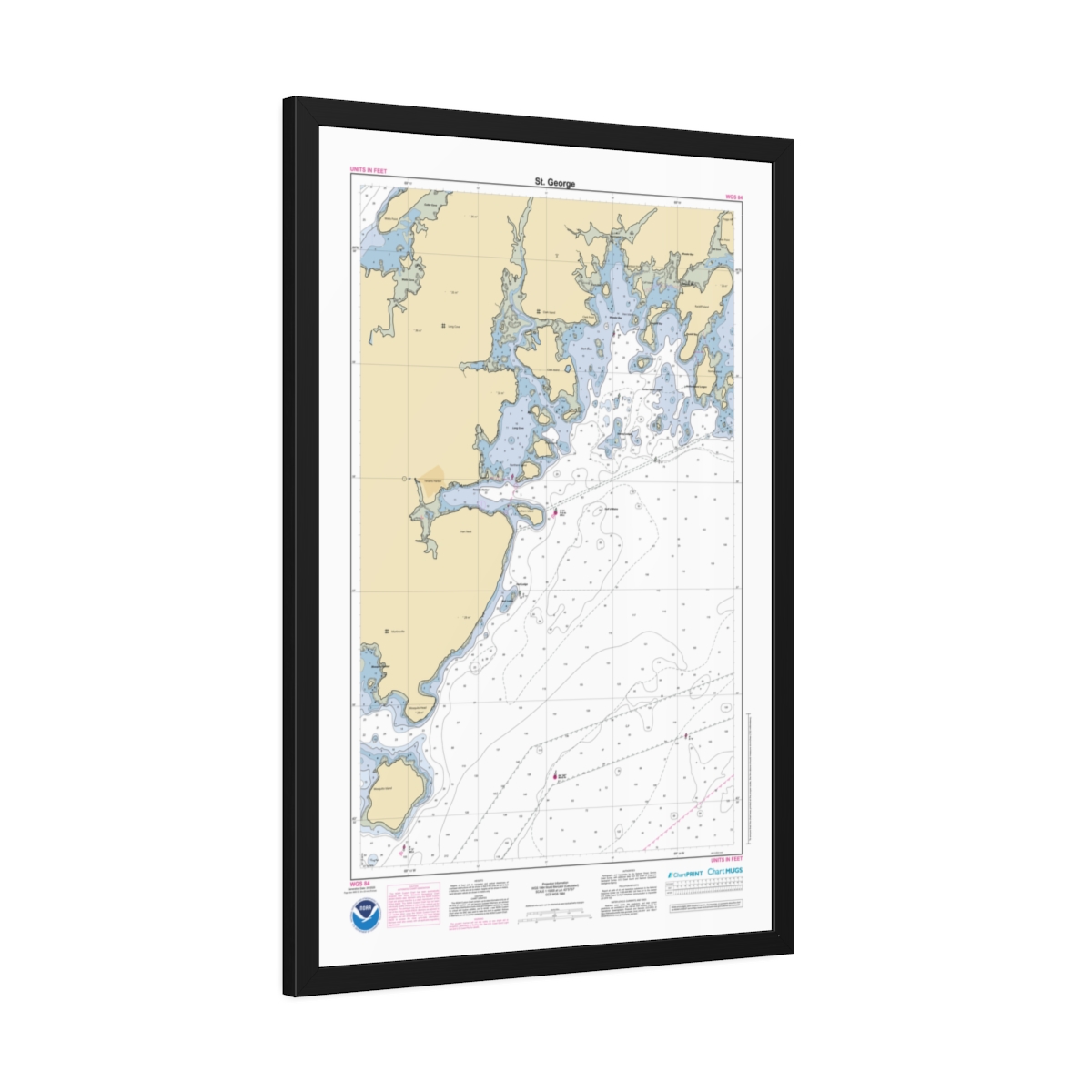 Framed Custom Chart of St. George – NOAA Nautical Chart 22″ x 34″